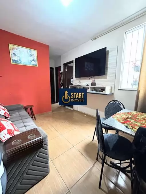 O imóvel possui 2 quartos, sala, cozinha, banheiro social, área de serviço e 1 vaga de garagem rotativa.